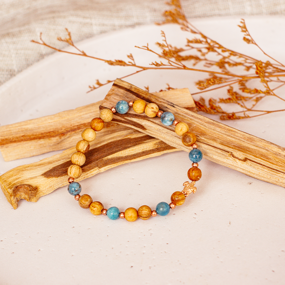 Dieses wunderschöne Palo Santo Armband aus zertifiziertem Palo Santo Holz und schimmerndem Apatit wird von mir mit viel Liebe, Sorgfalt und einem feinen Gespür für Details von Hand gefertigt. Jedes einzelne Armband ist ein kleines Unikat, bei dem die Materialien achtsam ausgewählt und harmonisch kombiniert werden, um eine besondere Ausstrahlung und Energie zu schaffen.
