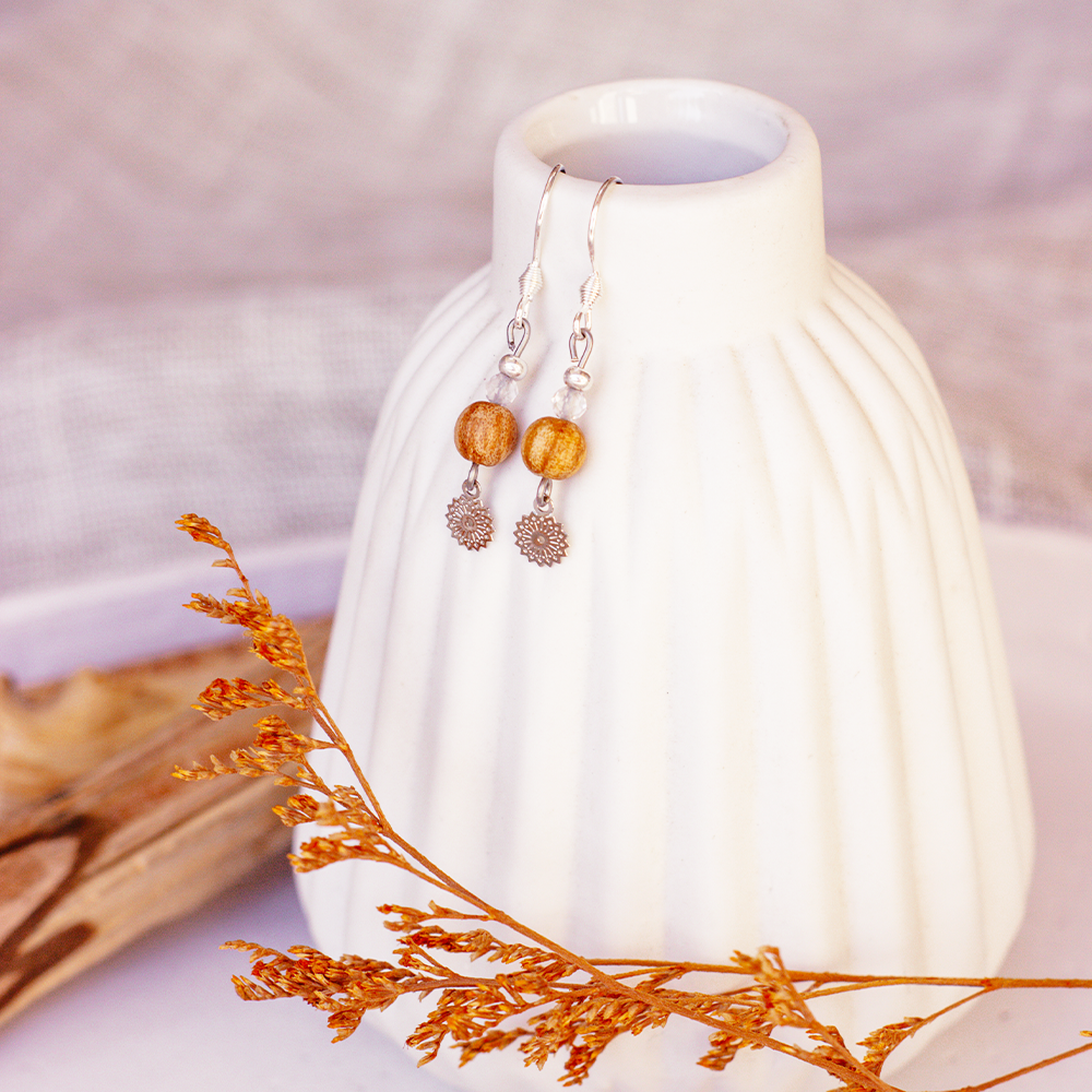 Diese wunderschönen Palo Santo Ohrringe aus zertifiziertem Palo Santo Holz und schimmerndem Bergkristall werden von mir mit viel Liebe, Sorgfalt und einem feinen Gespür für Details von Hand gefertigt. Jedes einzelne Stück ist ein kleines Unikat, bei dem die Materialien achtsam ausgewählt und harmonisch kombiniert werden, um eine besondere Ausstrahlung und Energie zu schaffen.