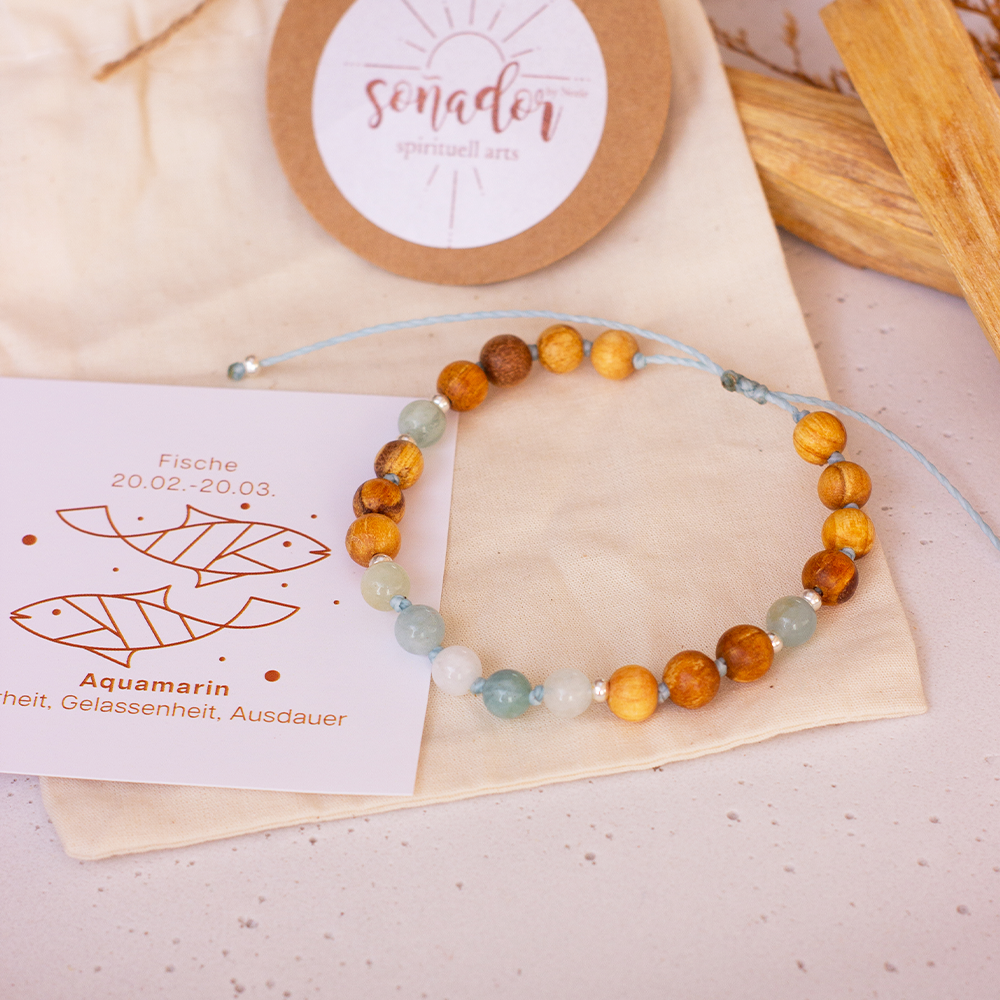 Dieses wunderschöne Palo Santo Sternzeichenarmband aus zertifiziertem Palo Santo Holz und schimmerndem Aquamarin wird von mir mit viel Liebe, Sorgfalt und einem feinen Gespür für Details von Hand gefertigt. Jedes einzelne Armband ist ein kleines Unikat, bei dem die Materialien achtsam ausgewählt und harmonisch kombiniert werden, um eine besondere Ausstrahlung und Energie zu schaffen.