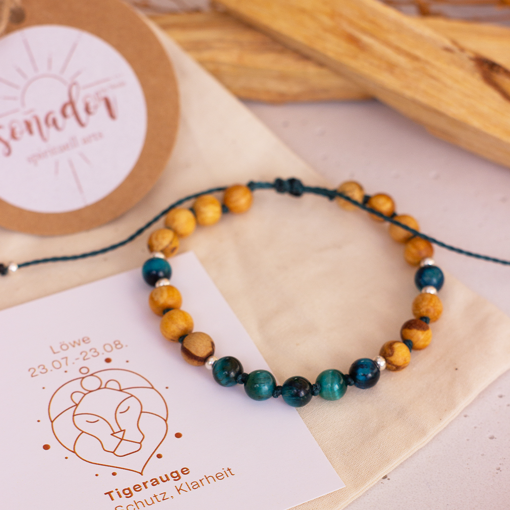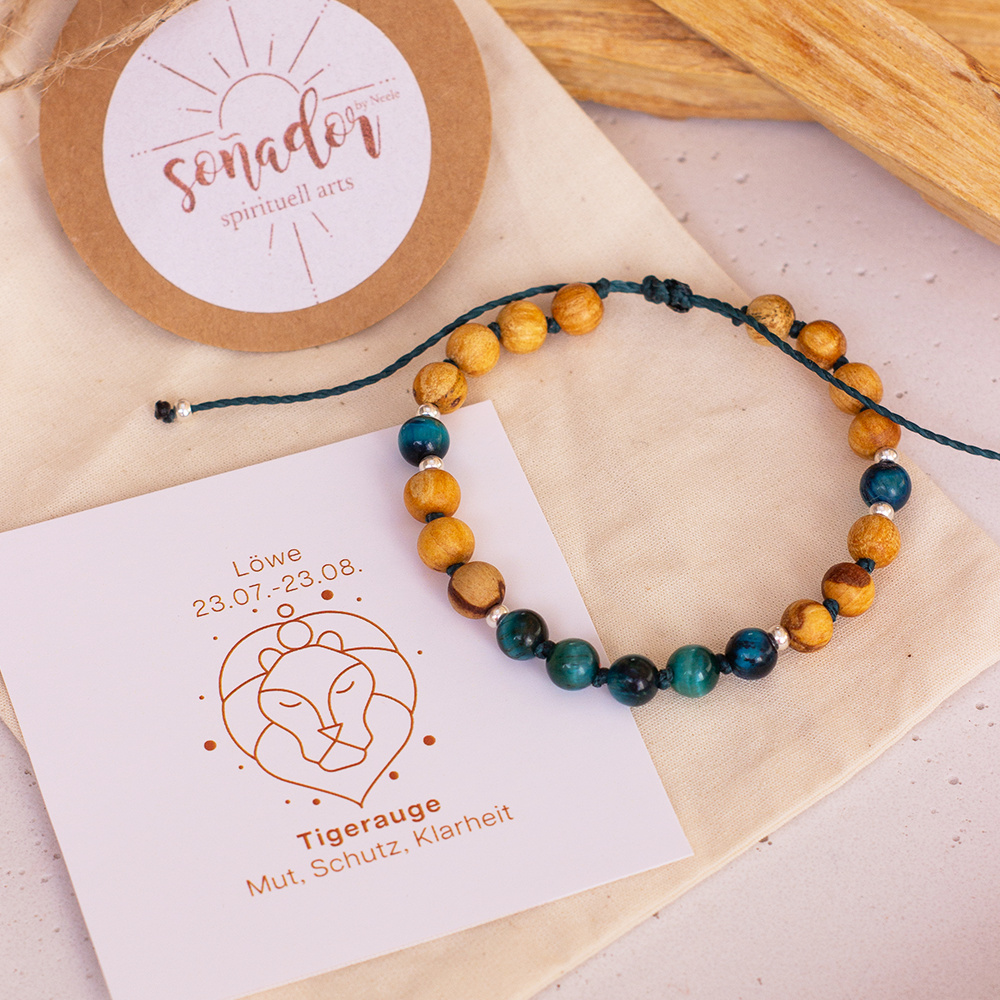 Dieses wunderschöne Palo Santo Sternzeichenarmband aus zertifiziertem Palo Santo Holz und schimmerndem Tigerauge wird von mir mit viel Liebe, Sorgfalt und einem feinen Gespür für Details von Hand gefertigt. Jedes einzelne Armband ist ein kleines Unikat, bei dem die Materialien achtsam ausgewählt und harmonisch kombiniert werden, um eine besondere Ausstrahlung und Energie zu schaffen.